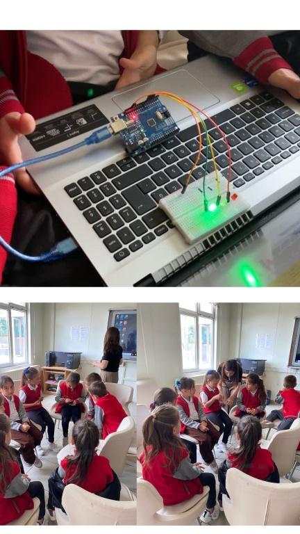 Mayıs ayında 2/A ve 1/A sınıfı öğrencileri, Arduino ile tanışarak fiziksel dünyayla kodlama arasındaki ilişkiyi keşfetti.